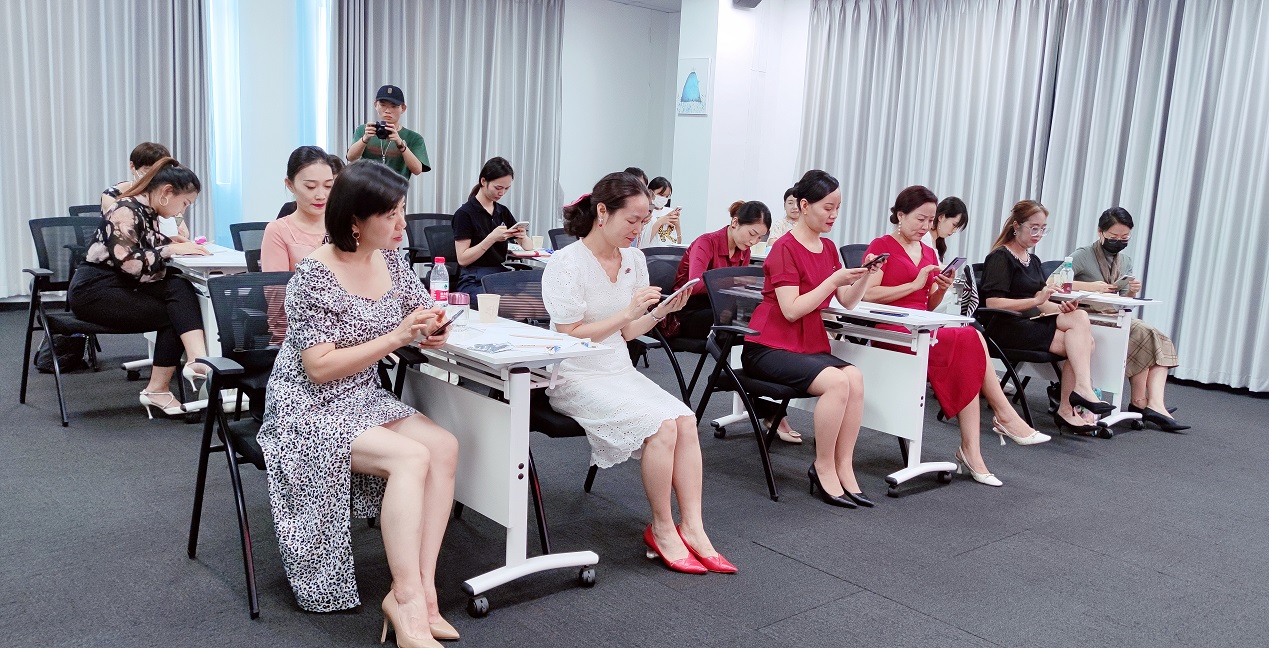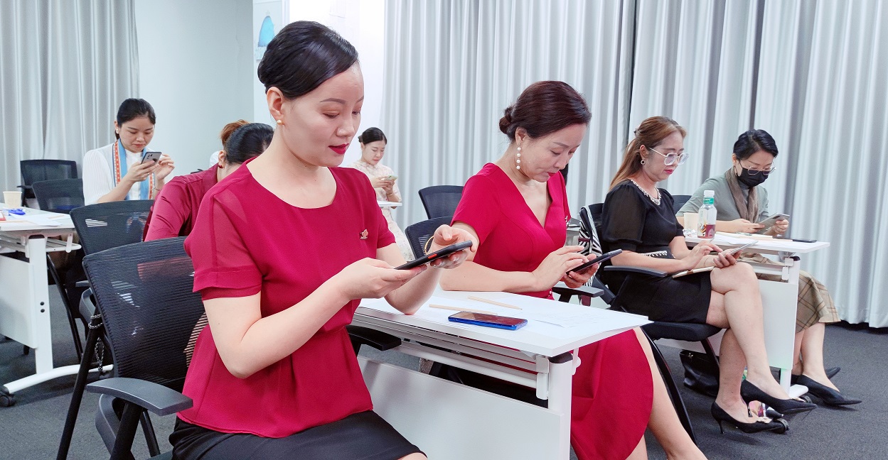 接著,呂老師用通俗易懂的語言帶領(lǐng)會員朋友們實操拍攝禮儀課堂花絮、課堂景別選取、運鏡方式及后期制作要點。會員朋友們紛紛拿起手機跟隨老師實操,還提出很多關(guān)于拍攝的問題,現(xiàn)場氣氛十分熱烈。