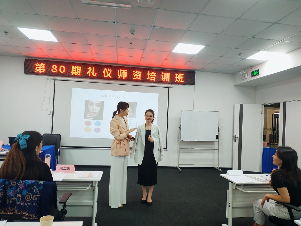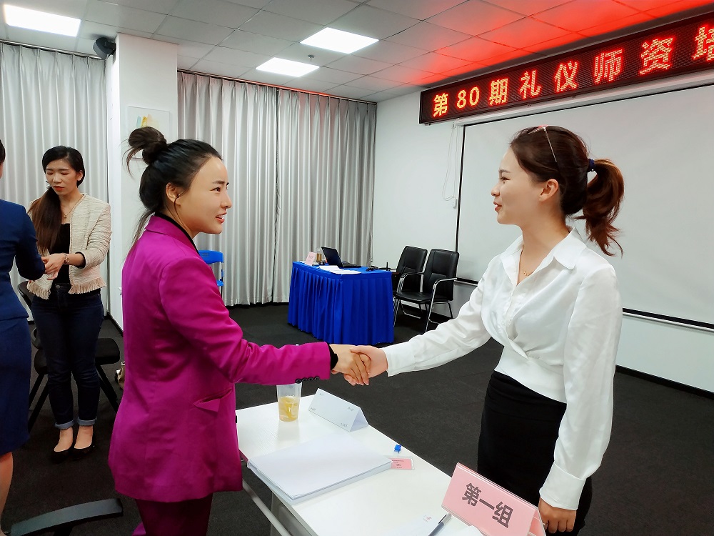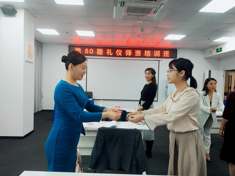 時淑妍老師為學員們講授了作為禮儀培訓師職業(yè)風采的禮儀細節(jié),并讓學員們逐一練習,通過指導力求讓每位學員都能盡快掌握禮儀培訓師的現(xiàn)場授課的風采及技巧。