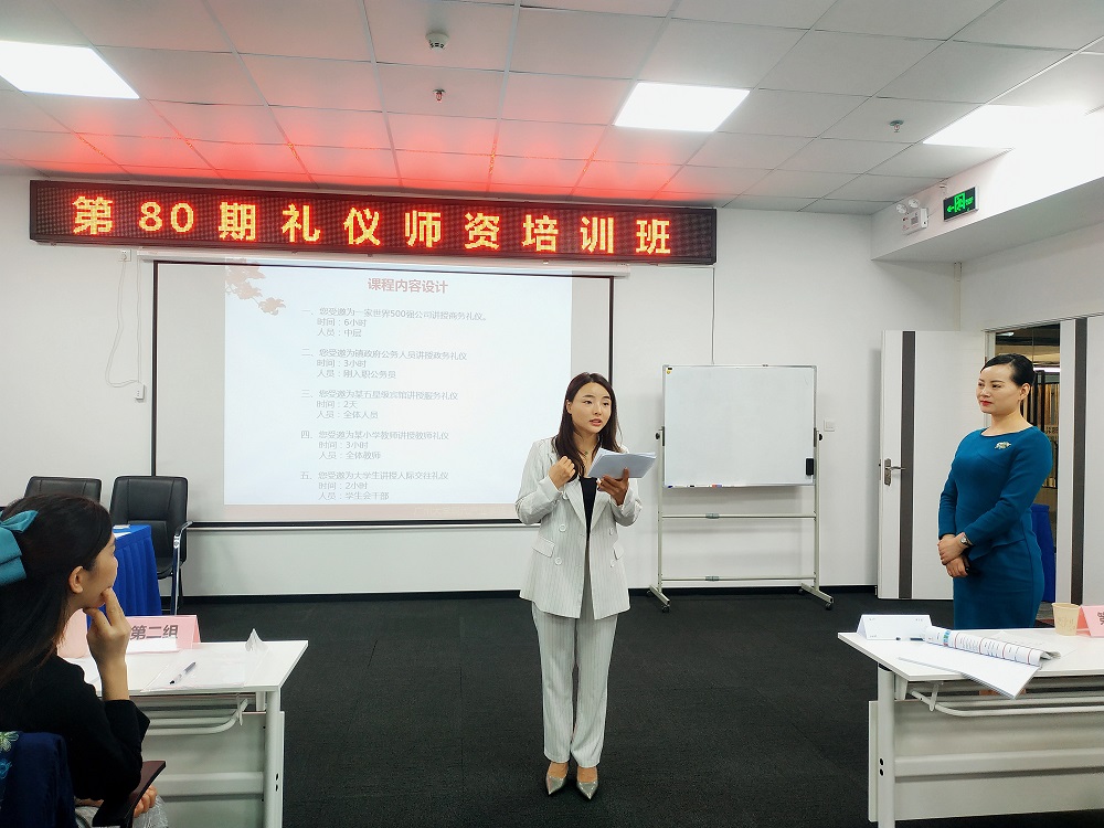 最后一天的課程學習,上午是《禮儀培訓師的風采展現(xiàn)》,下午則進行了本期全國禮儀師資培訓班的禮儀培訓師認證考試。